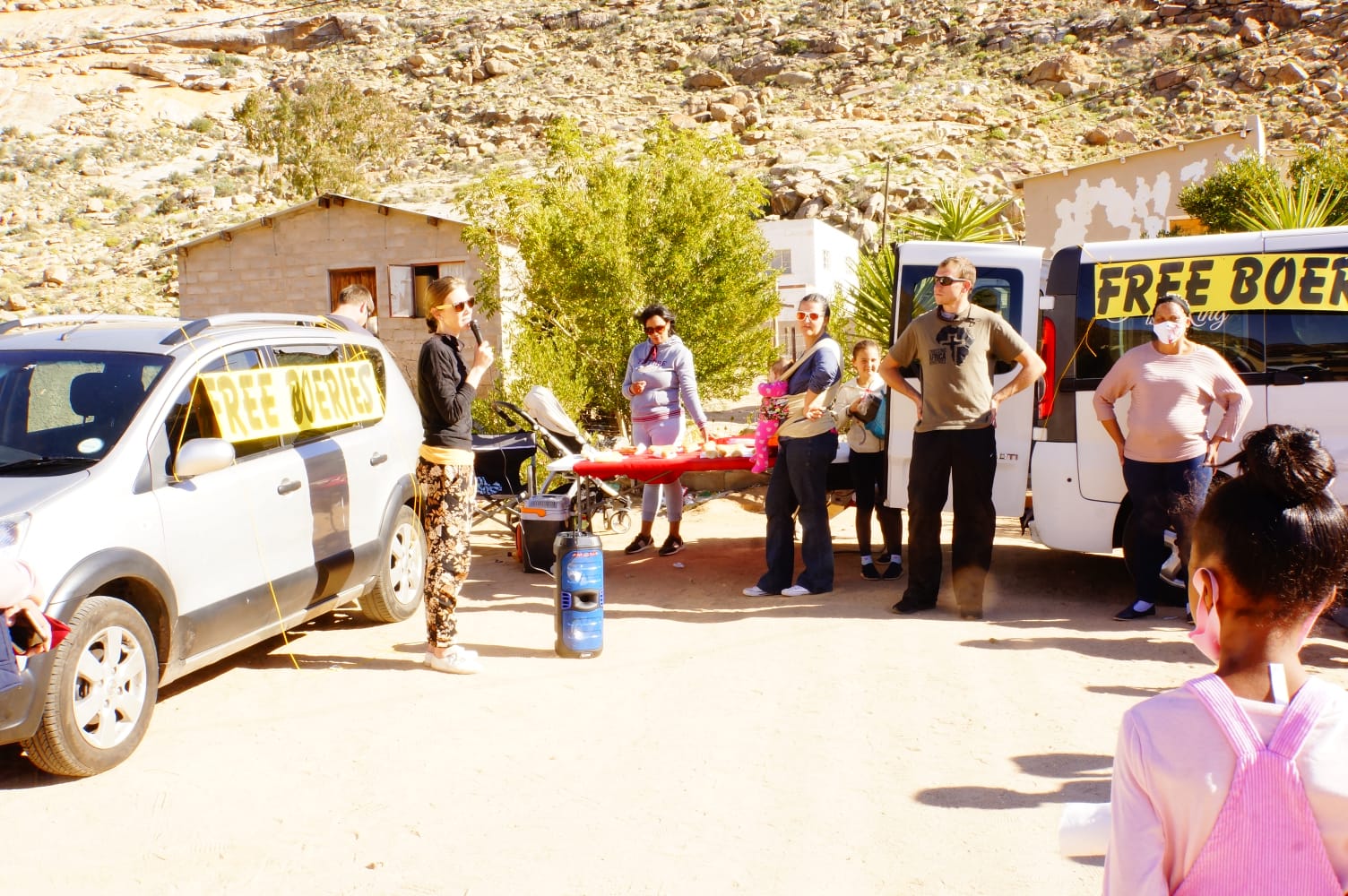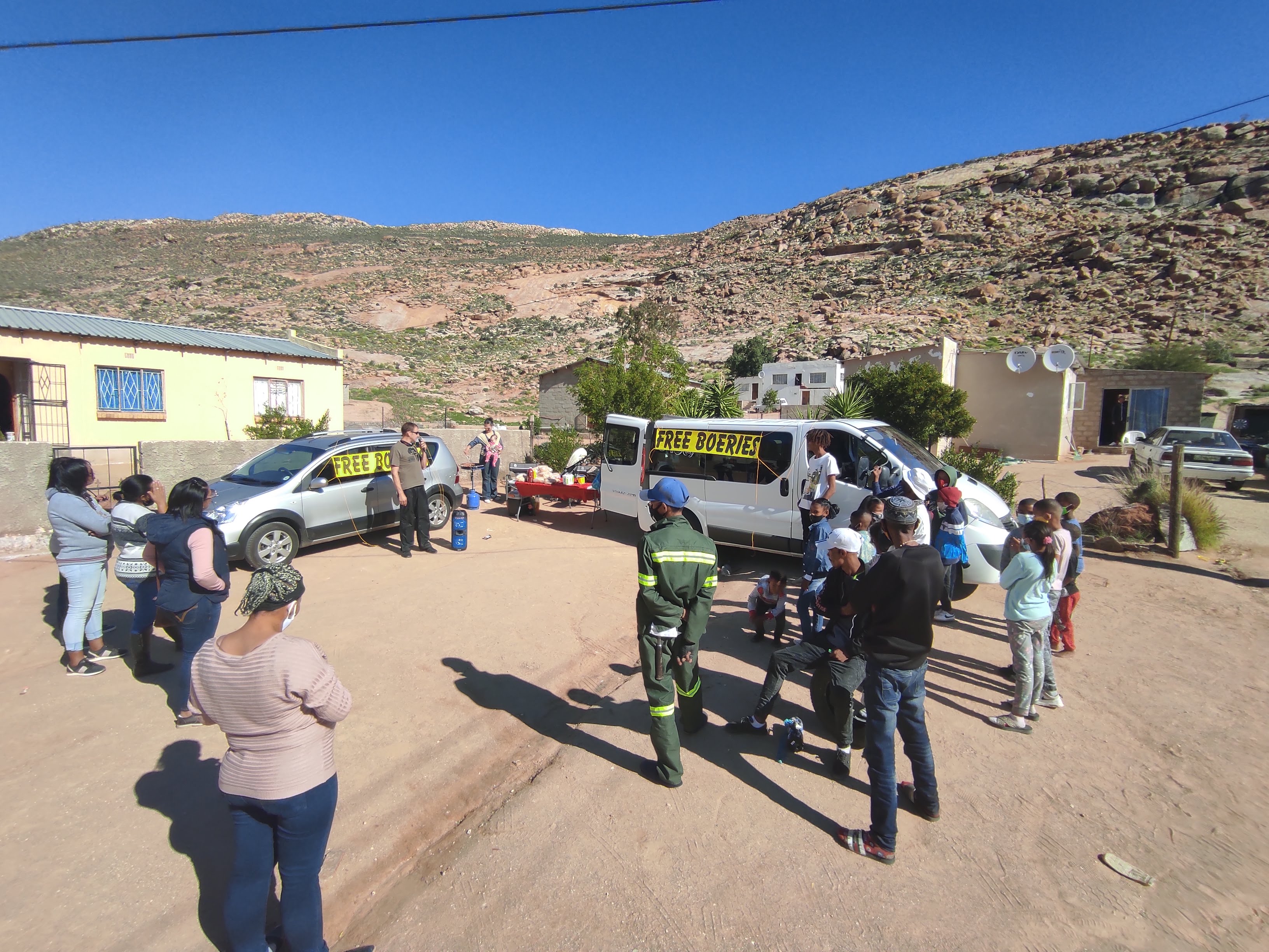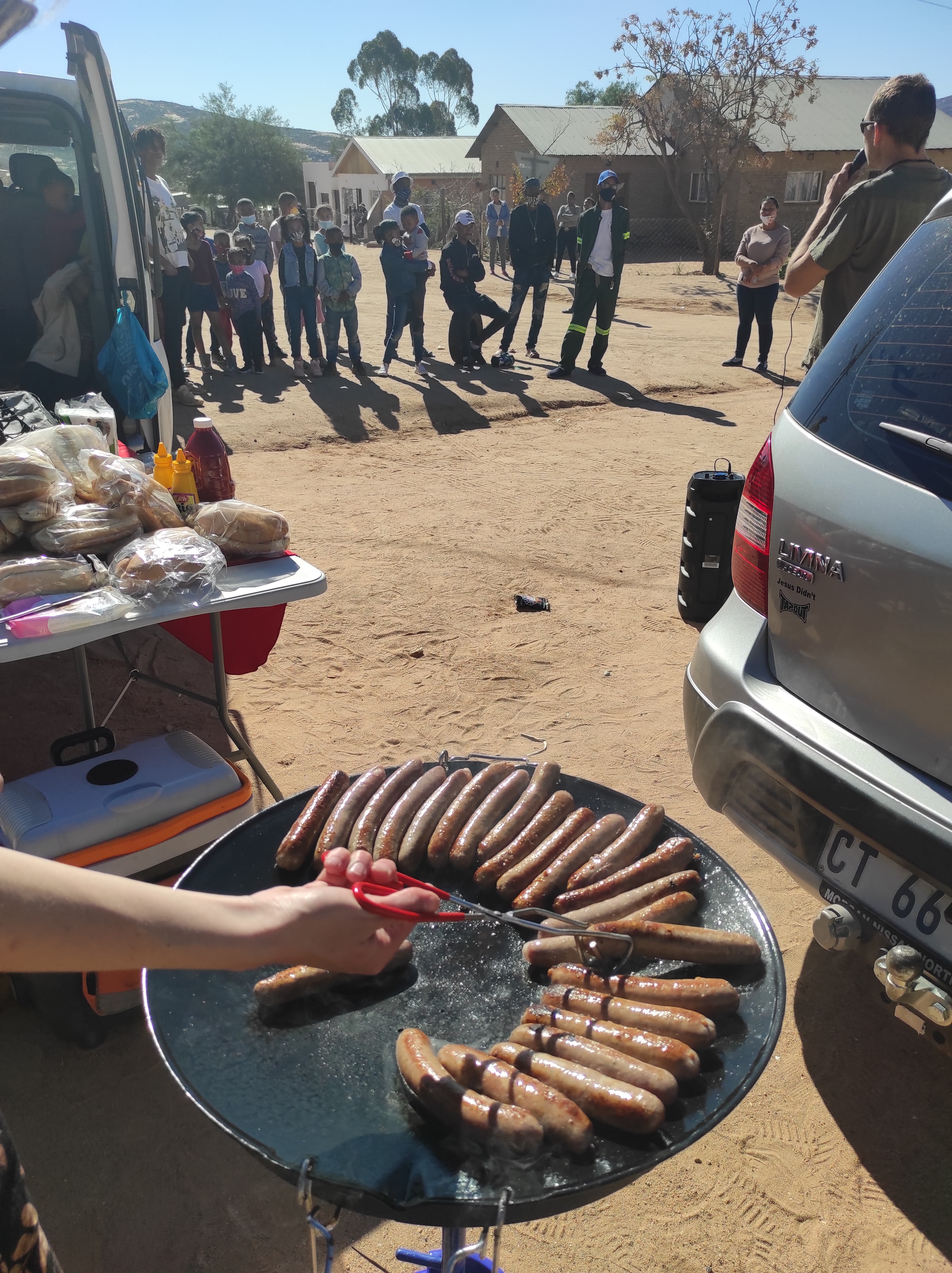 We had a fantastic day in the “Kroek” in Springbok, drawing people with the smell of lekker boeries and Henri having a shot at open-air preaching, sharing the Gospel. We went there with 96 boeries, and within an hour the people finished everything.