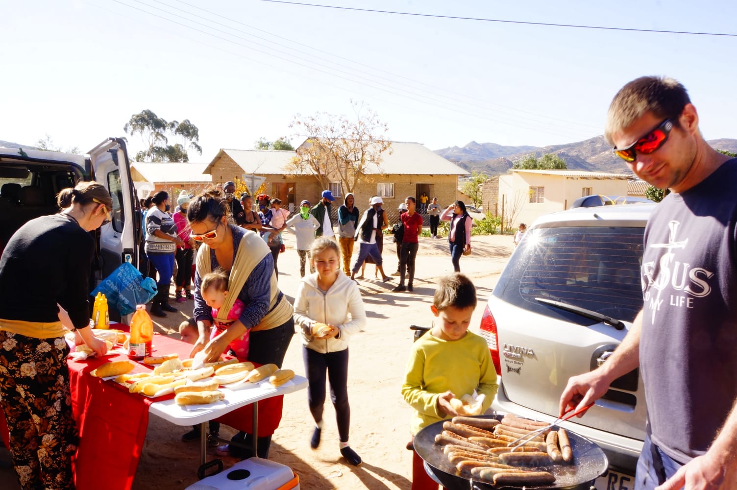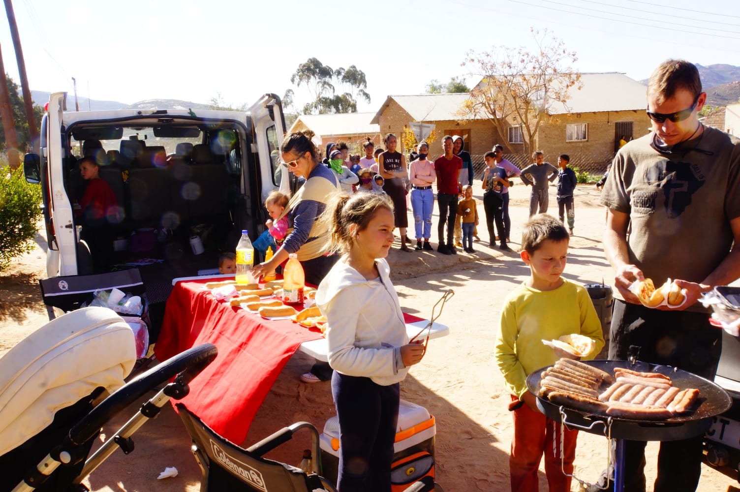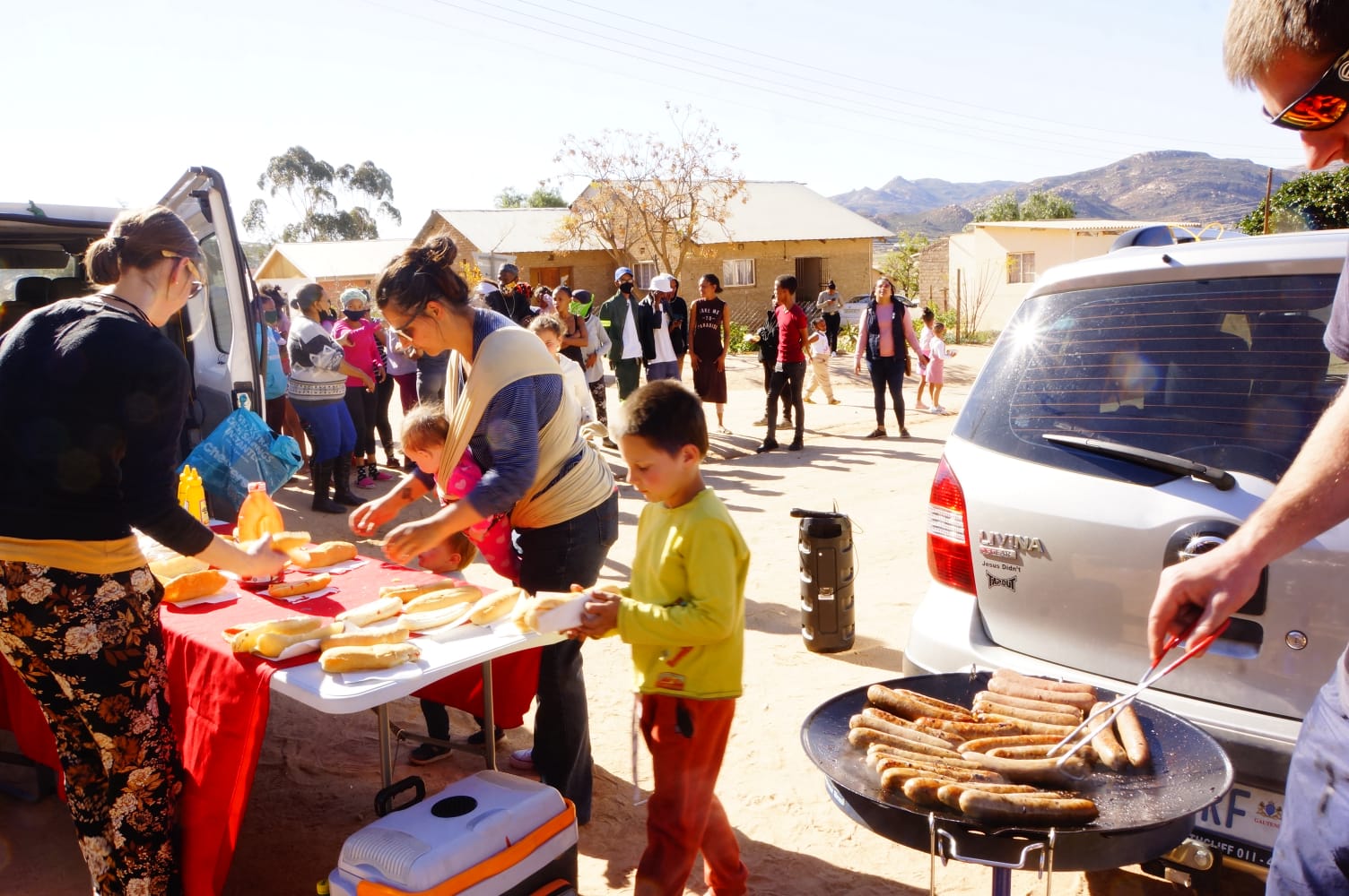 We had a fantastic day in the “Kroek” in Springbok, drawing people with the smell of lekker boeries and Henri having a shot at open-air preaching, sharing the Gospel. We went there with 96 boeries, and within an hour the people finished everything.