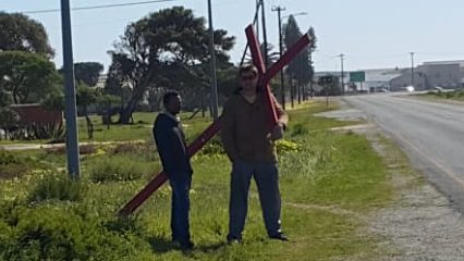 Another time we walked with the cross while Henri and Tjaart were visiting, Johan approached us and started asking questions.